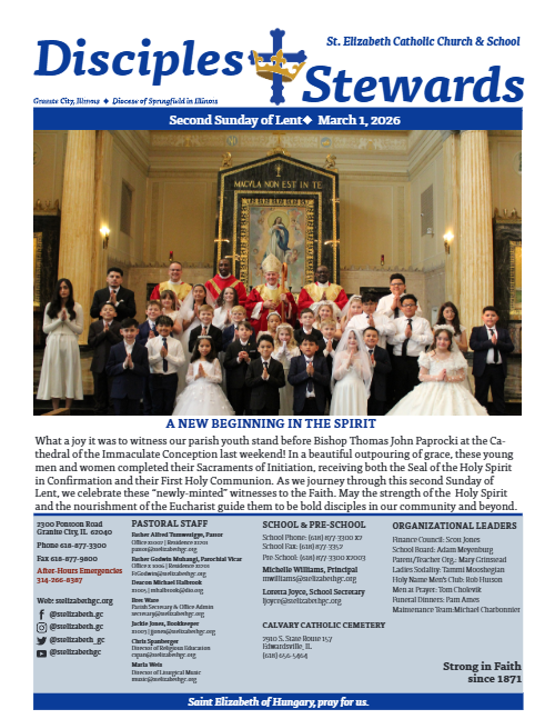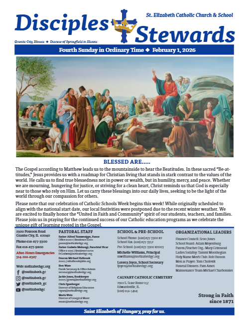 We commit ourselves to the discipleship & stewardship way of life as commanded by Jesus Christ and revealed by Sacred Scripture & Tradition. We are committed to implementing the Four Pillars of Discipleship & Stewardship of our diocese: Hospitality, Prayer, Formation, & Service.