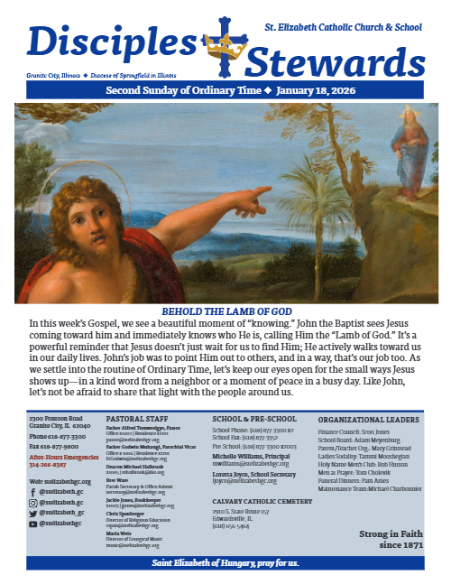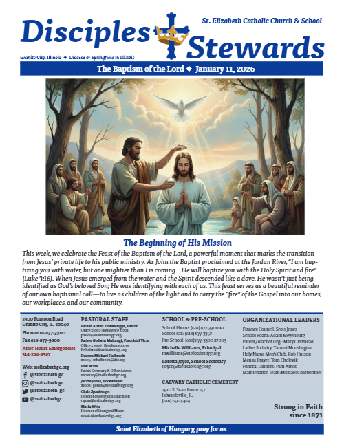 We commit ourselves to the discipleship & stewardship way of life as commanded by Jesus Christ and revealed by Sacred Scripture & Tradition. We are committed to implementing the Four Pillars of Discipleship & Stewardship of our diocese: Hospitality, Prayer, Formation, & Service.